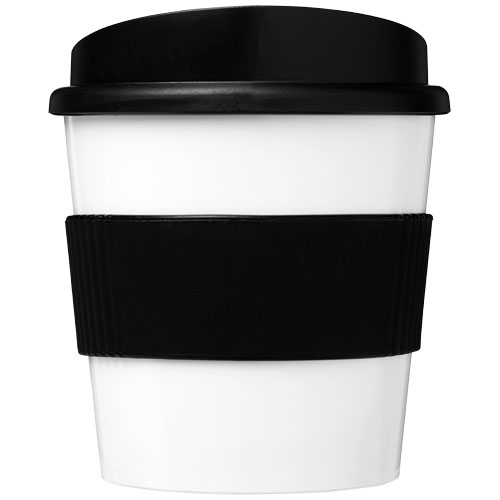 primo 250 ml tumbler with grip. Single-wall tumbler with press-on spill-proof lid and silicone grip. Fits under most coffee makers. Tumbler features a full colour wraparound design moulded to the product, making it long-lasting and durable. EN12875-1 compliant; dishwasher safe, and microwave safe. Volume capacity is 250 ml. Mix and match colours to create your perfect mug. Contact customer service for additional colour options. Made in the UK. PP Plastic, Silicone.