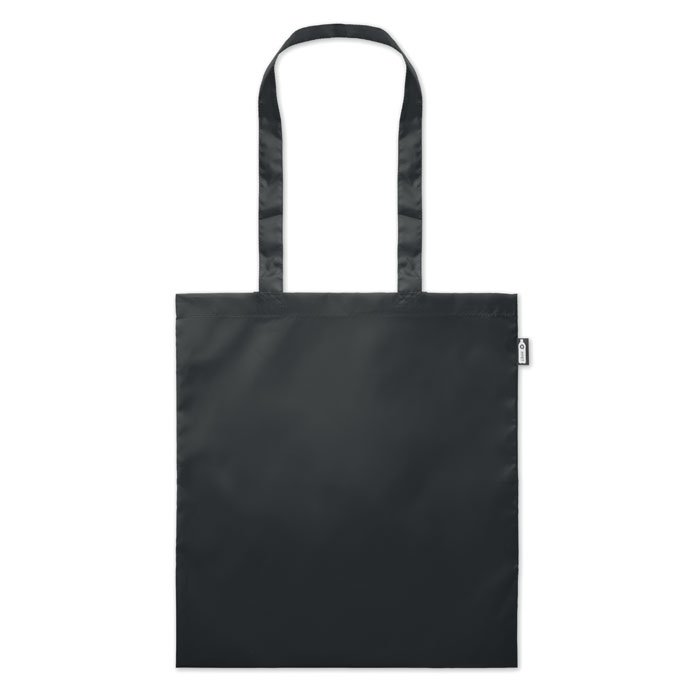 Shopping bag in 190T RPET with long handles. 100 gr/m². Eco-friendly material made from recycled plastic bottles.