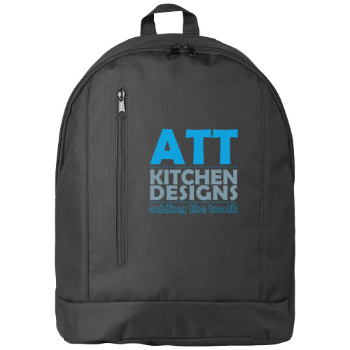 Backpack. Zippered large main compartment with slash pocket inside. Front pocket with vertical zipper closure. Adjustable padded shoulder straps and reinforced top carry handle. 600D Polyester.