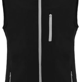 2-layer softshell gillet. Contrasting inverted sealed effect zip with chin protector and puller. Three pockets with combined zip with puller. Elastic drawcord and fasteners on the bottom hem. Water resistant. Wind-proof model. The model is 184 cm and is wearing size L.