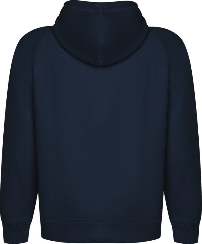 Unisex hoodie in organic cotton and recycled polyester. Kangaroo style pocket. Single jersey lining in hood. Round adjustable drawcord and embroidered eyelets. Cuffs and waistband in 2×1 ribbed fabric. Removable label. Individual recycled packing. The male model is 185 cm and is wearing size L, and the female model is 168 cm and is wearing size S.