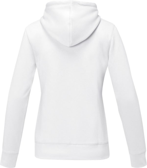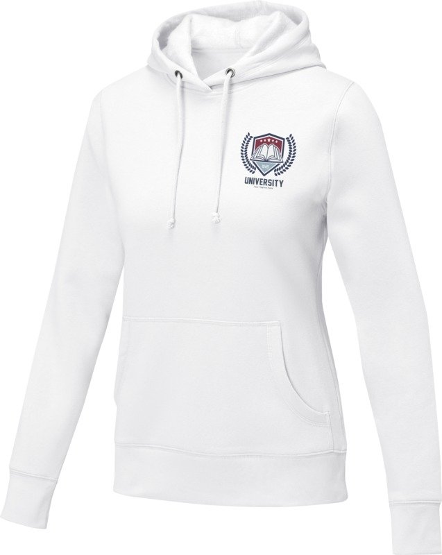 The Charon women’s hoodie – the ultimate comfortable style. Made from a 240 g/m² blend of cotton and polyester, a perfect balance between comfort and breathability. The brushed interior ensures coziness, complemented by flat knit rib cuffs and bottom hem that optimize comfort. The adjustable drawstring in the hood offers a personalised fit, while the kangaroo pocket adds a touch of functionality and urban flair. Additionally, the interior custom branding options allow personalised branding or customisation inside the hoodie. Whether you’re relaxing at home or heading out for a casual adventure, the hoodie is the ideal companion for any setting. This hoodie is designed with a fitted shape for a feminine look.