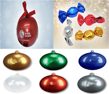 Promotional 100mm Christmas Bauble is filled with 6 chocolates balls inside. This Promotional 100mm Christmas Bauble is ideal for Christmas events or meetings. The Promotional 100mm Christmas Bauble it’s a perfect giveaway for Christmas events.