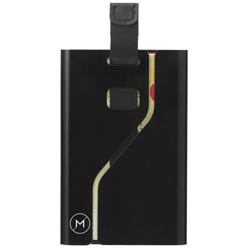 Aluminum card holder protects your cards from identity theft, breaking and damage. Simply take out the cards using the cord. Holds up to 9 cards. Presented in a gift box. Aluminium.