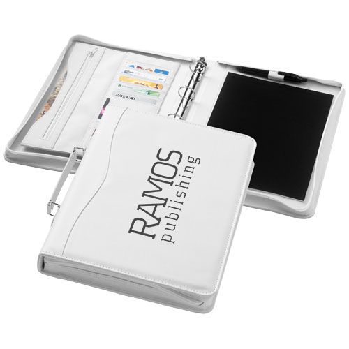 A4 portfolio. Portfolio with handle, zipper closure, ring binder, zipper pocket and document compartments. Includes 20 pages lined notepad. Pen and accessoires not included. Imitation leather.