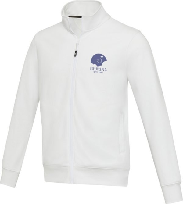 The unisex recycled full zip sweater – a perfect fusion of style, sustainability and functionality. Made of 320 g/m² recycled cotton and recycled polyester, this sweater leads the way for sustainable fashion. Practicality meets aesthetics with front pockets, and the recycled front zipper supports the sustainable claim even further. The sweater incorporates Cyclo® recycled fibres where they use pre-sorted waste that determines the colour of the yarn. These fibres do not only reduce the demand for virgin resources but also exhibit a commitment to a circular life, embodying the essence of reducing waste and promoting a closed-loop system. Each sweater also comes with an Aware™ tracer. This innovative feature allows users to trace the origins and journey of their item through a QR code, enhancing transparency in the supply chain and fostering a stronger connection between the product and its production process. With environmental awareness growing, the Galena unisex full zip sweater is the ideal sustainable choice.