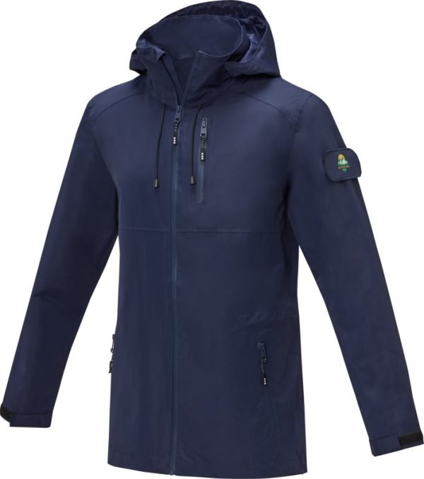 The unisex lightweight GRS recycled circular jacket – the biggest positive impact maker in terms of environmental performance. More sustainable exploration starts with better design – a design with less impact on the environment. The total average reduction in impact already made with 1 jacket is as follows: 22% eco-costs, 17% carbon footprint and 32% CED. Made of 130 g/m² 200T taslan fabric of GRS certified recycled nylon, the Kai is a classic lightweight, fully seam sealed jacket to ensure enhanced water resistance. Bad weather hardly stands a chance with this 5000 mm water protection and the 5000 g/m² breathability brings comfort. Developed with a waistband for a more flattering fit, waterproof zippers (including the pockets), and the jacket is also packable into the lower inside back pocket. Our Elevate clothing is designed for branding, but we are also aware that a (company) logo on clothing can shorten the lifespan of garments. Therefore, the Kai has been designed with a removable “logo” sleeve patch. The jacket can be returned via a take-back program featuring a QR code that provides additional information.