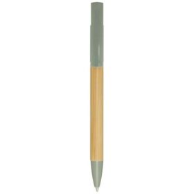 Bamboo ballpoint pen that also functions as a phone holder. The button and mid ring are made of recycled plastic, the tip is made of brass, and the barrel is made of responsibly sourced bamboo. Ink colour: Blue. Writing length: 1000 metres. Nib size: 1.0 mm.