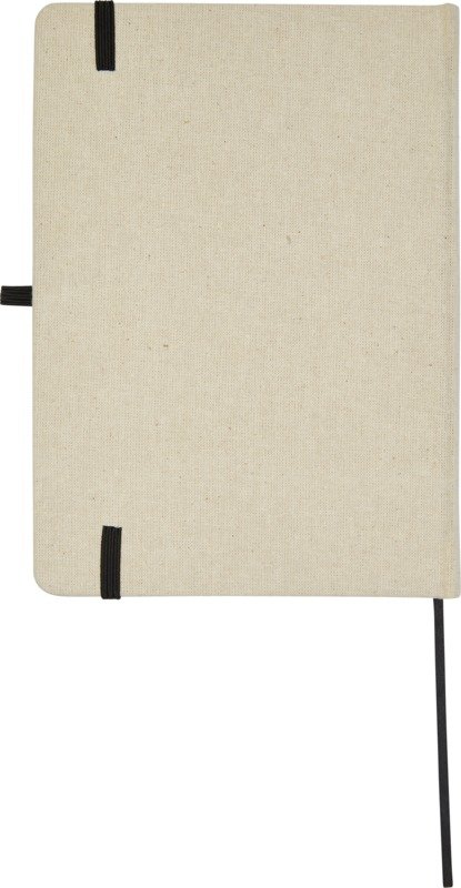 Notebook made from organic cotton with 120 pages of 70 g/m2 recycled white lined paper. Featuring a black ribbon marker, elastic closure, and a pen loop. Organic cotton is grown using sustainable farming practices that help to protect the environment and promote biodiversity. By avoiding the use of harmful chemicals, organic cotton farming can help to reduce soil and water pollution, as well as the risk of health problems for farmers and their families.