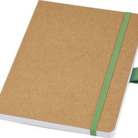 Recycled lined paper (70 g/m²) 80-sheets notebook featuring rounded corners, coloured elastic band, and a pen loop that matches the 107384 pen colours.