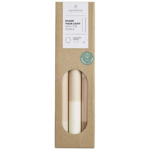 These dinner limestone candles feature a vibrant, layered colour palette and are handmade from plant-based, paraffin-free wax. They are unscented, have a 100% cotton wick, and burn cleanly. Each purchase plants a tree for farmers in Africa and supports a special fair trade project in Java, Indonesia. Available in a variety of stunning colours. Set of three. Candle burn time: 18–20 hours.