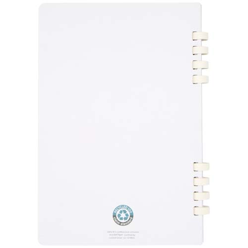 The A5 hardcover spiral notebook with 60 lined sheets is made of 70 g/m² RCS certified recycled paper. Made entirely from recycled materials, it’s a practical option that’s easier to dispose of and recycle after use.